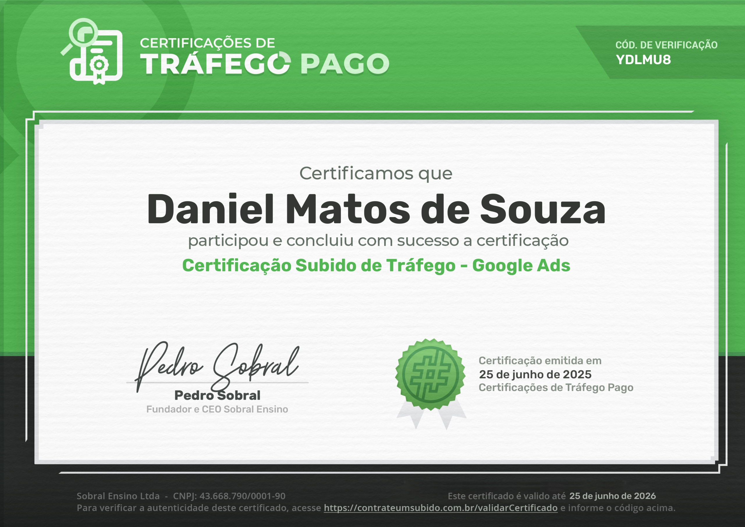 Daniel Matos, membro da maior comunidade de gestores de tráfego do Brasil, a Comunidade Sobral de Tráfego.
